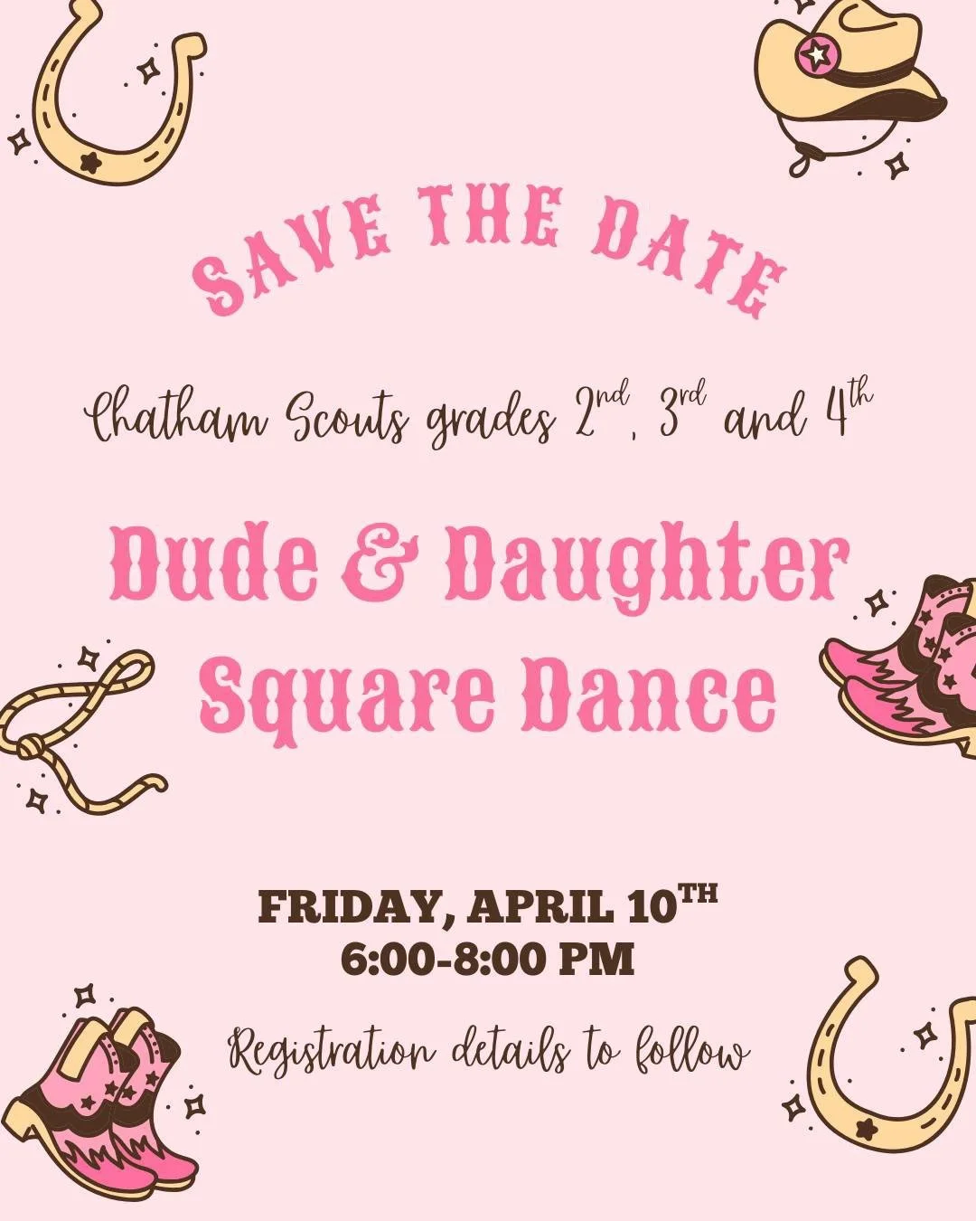 DUDES and DAUGHTERS SQUARE DANCE 4/10/26 from 6 - 8pm check out our Calendar tab for details.