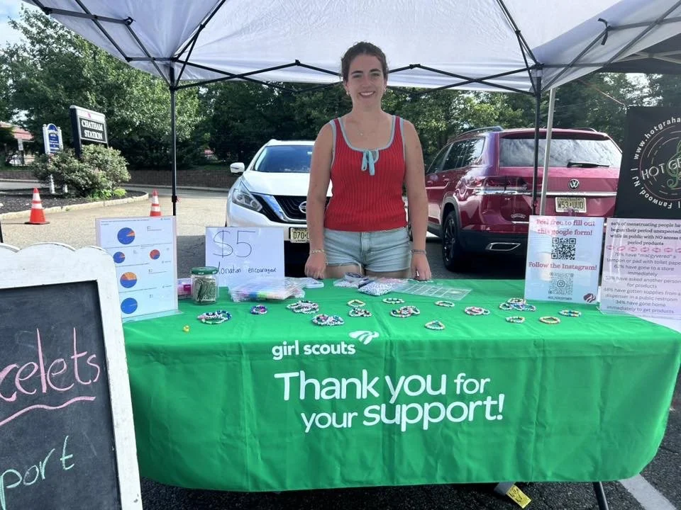 Asher Robson at the Chatham Farmers Market bringing attention to her Gold Award project - Period Power: Breaking the Cycle which addresses access to menstruating products.